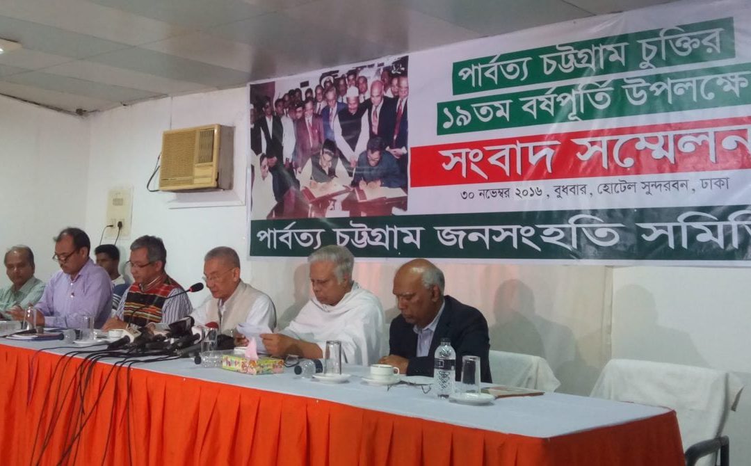 For the sake of implementation of the CHT Accord aimed at resolving the CHT problem through political and peaceful means, PCJSS as well as the Jumma peoples, all the more, are in firm conviction to resist any anti-accord and anti-Jumma-interest conspiracy and PCJSS reiterates this firm belief without any ambiguous voice on the 19th anniversary of the CHT Accord.